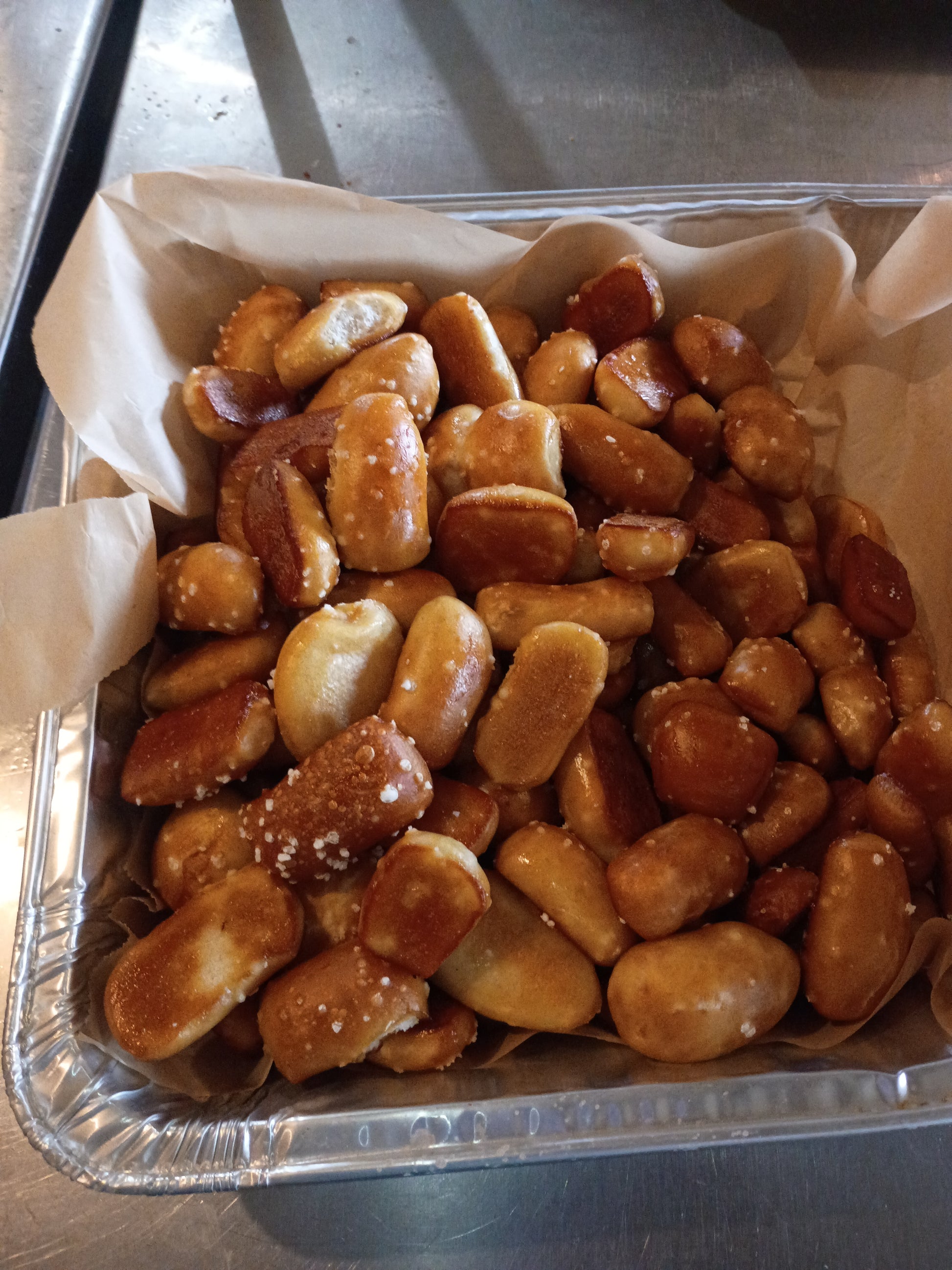 A golden mountain of our soft-baked pretzel bites, perfect for sharing. This party-size tray serves up to 20 guests and makes a delicious centerpiece for any gathering. Ideal for snacking, and celebrating.